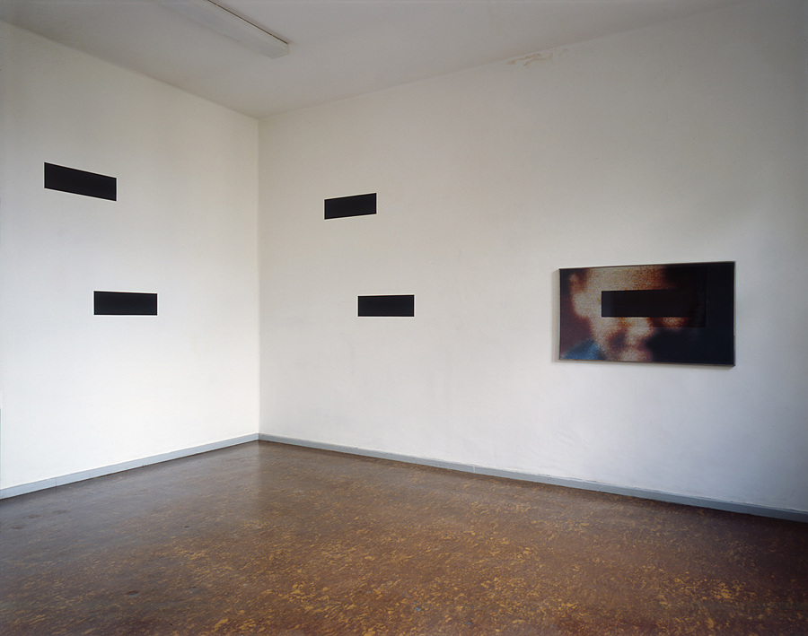 Zensurbalken mit Kind, 1992, Fotoarbeit und Wandzeichnung, 132 cm x 79 cm und 4 x 22 x 69cm
