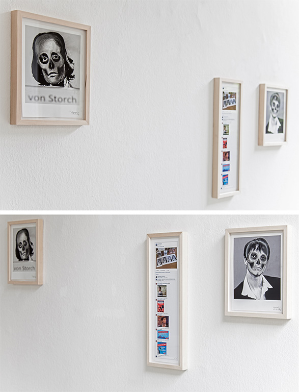 Beatrix von Storch - Facebookpost vom 11.03.2016 - Frauke Petry Kreidezeichnung auf Tintenstrahldruck "Who are your #femaleheroes?" Galerie Priska Pasquer Köln 2016