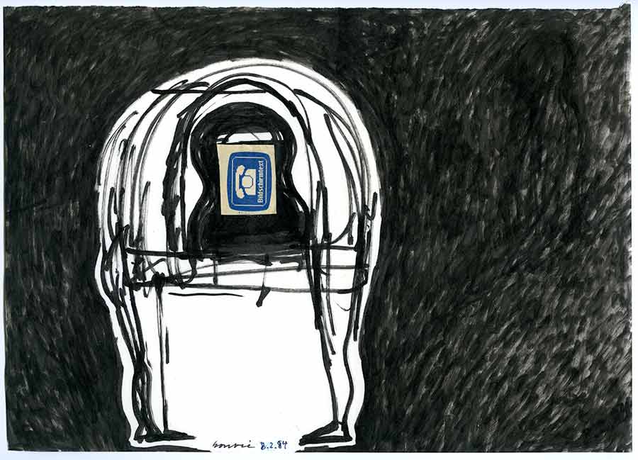 Bildschirmtext, 08.02.1984, pen drawing, 21 x 29,7 cm